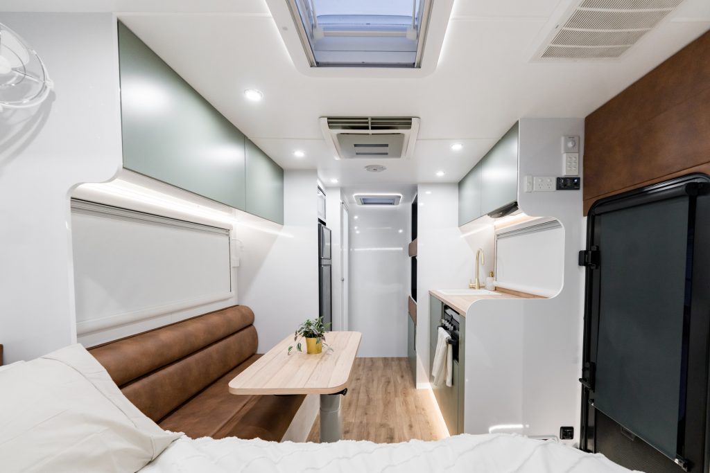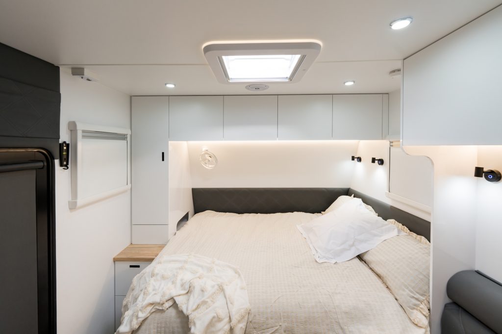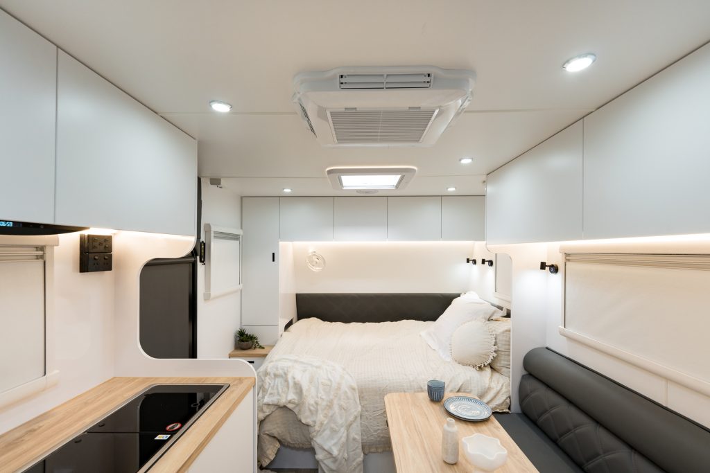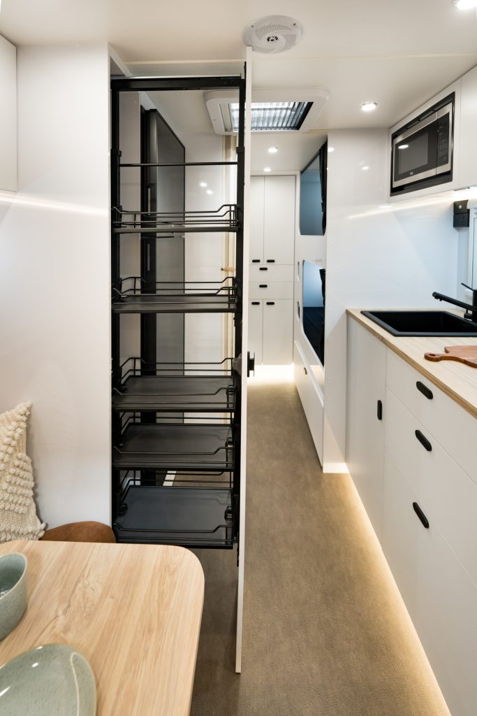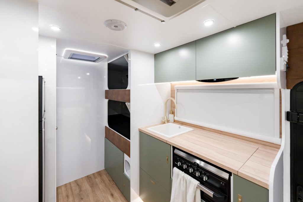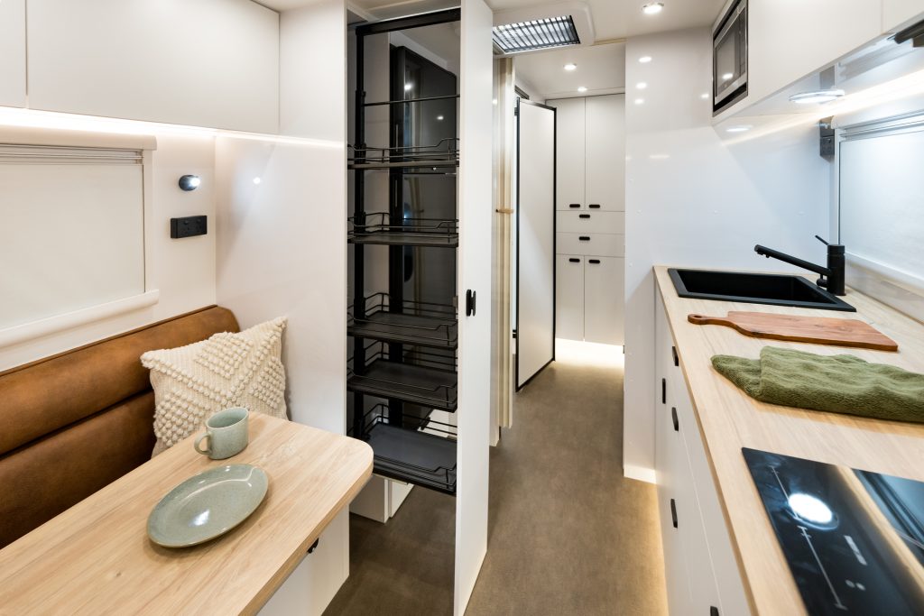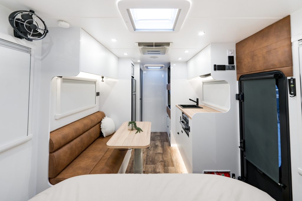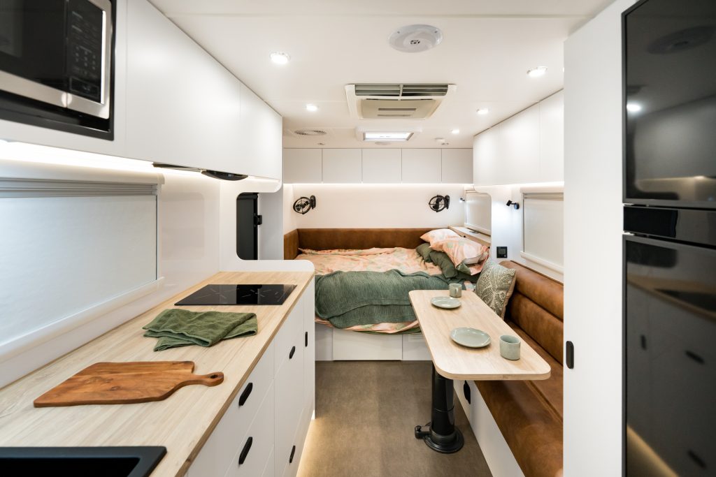The Peak was built to take you further and keep you out there longer. Wherever the road ends, the Peak is just getting started. With coil suspension built for Australia’s toughest tracks, a full Victron electrical system, six hundred watts of solar, and 450 amp hours of lithium power, you can park up somewhere incredible and stay as long as you like. Hydronic diesel heating, reverse cycle air conditioning, a compressor fridge, induction cooktops, and a washing machine mean life on the road looks a lot like life at home, just with a much better view.