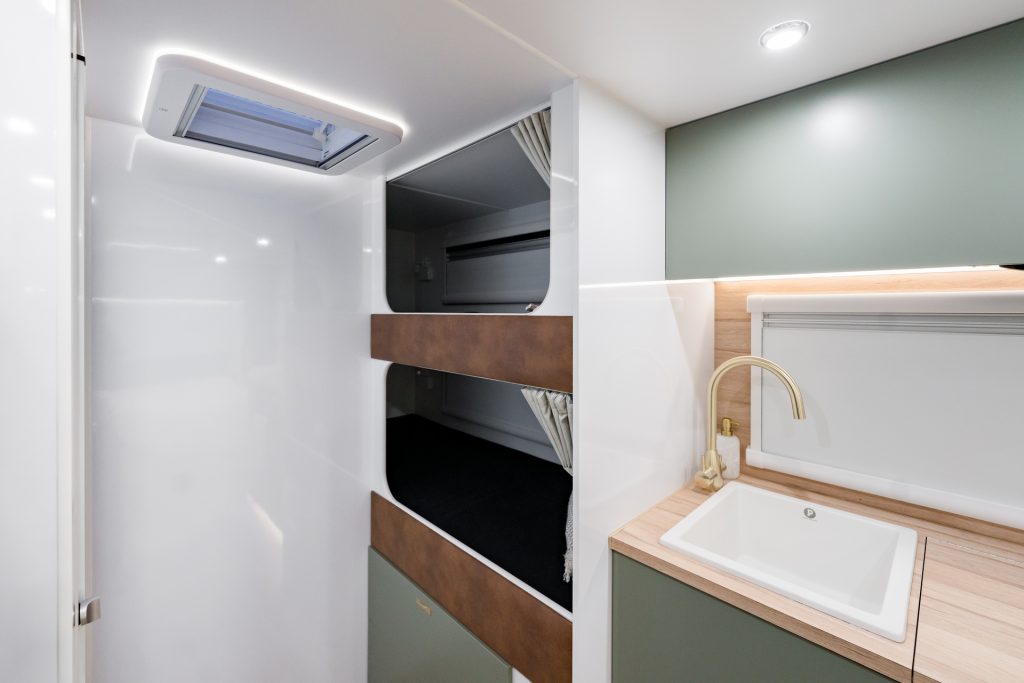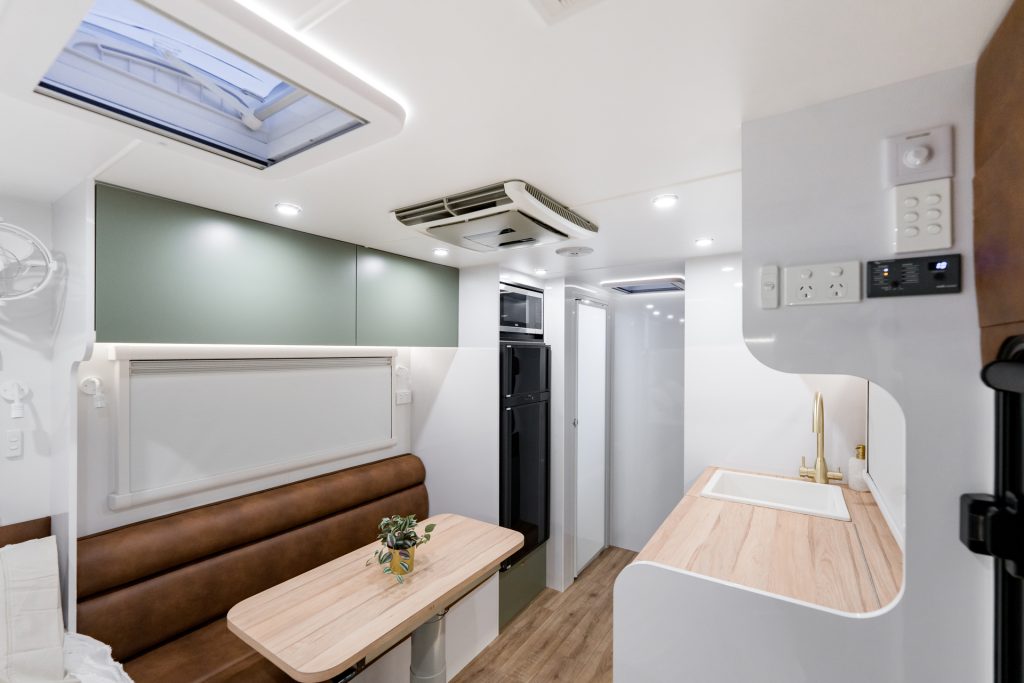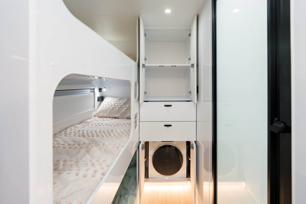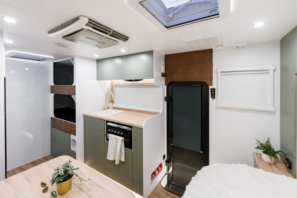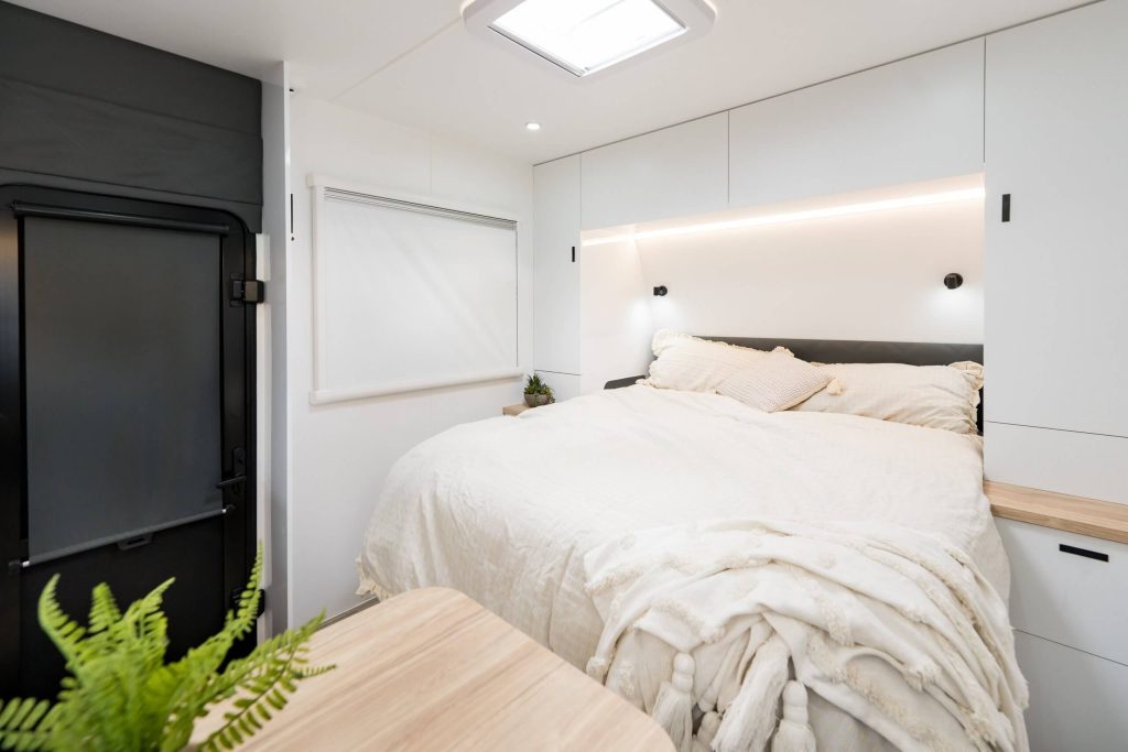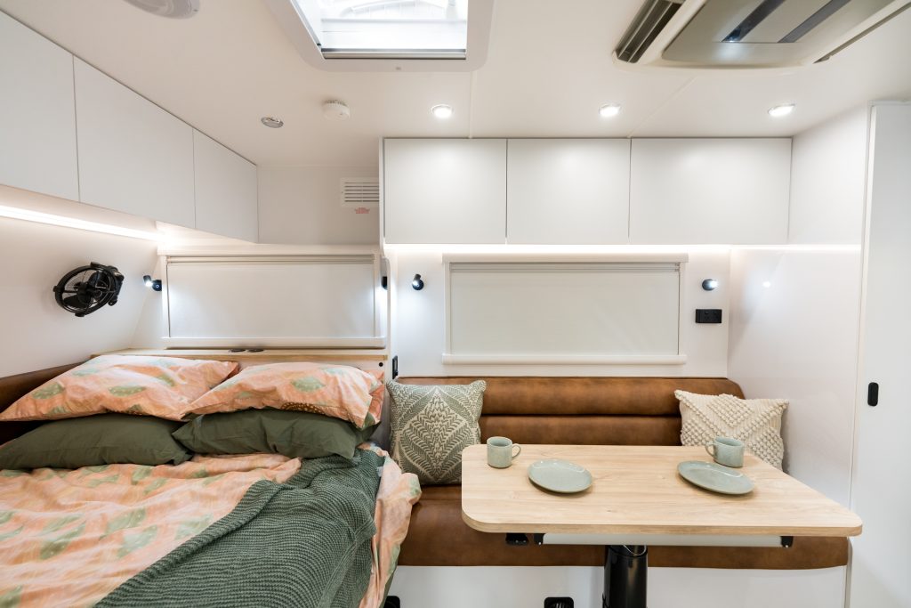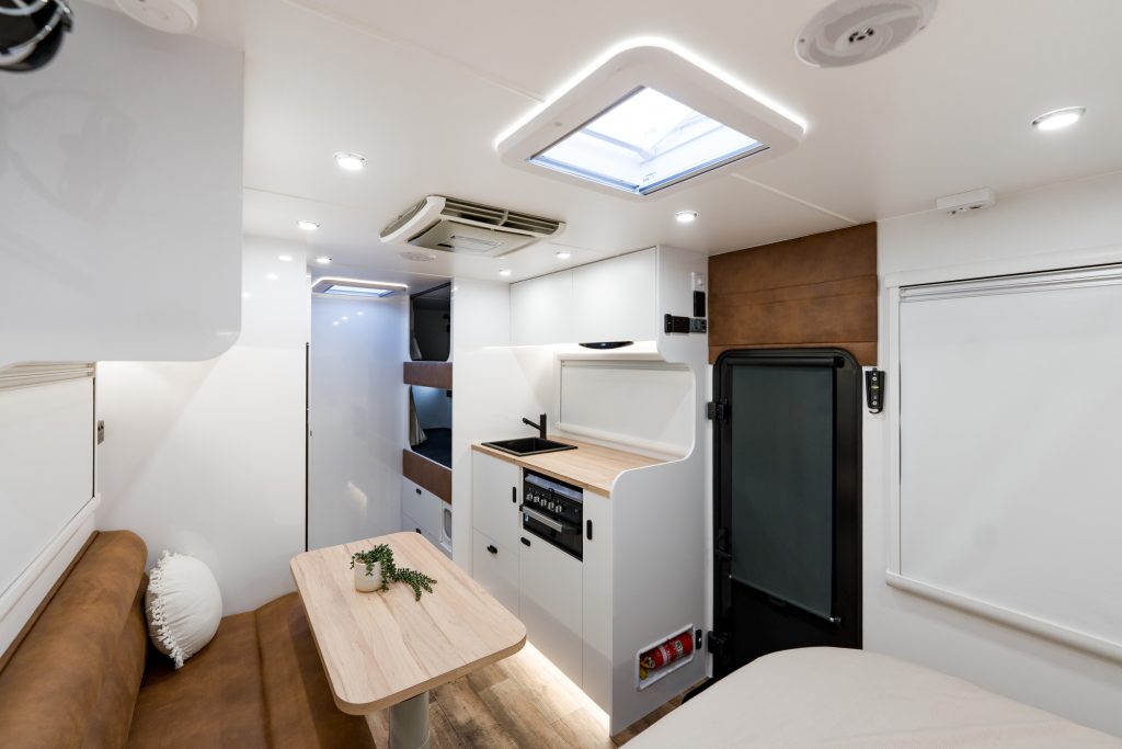 The Peak was built to take you further and keep you out there longer. Wherever the road ends, the Peak is just getting started. With coil suspension built for Australia’s toughest tracks, a full Victron electrical system, six hundred watts of solar, and 450 amp hours of lithium power, you can park up somewhere incredible and stay as long as you like. Hydronic diesel heating, reverse cycle air conditioning, a compressor fridge, induction cooktops, and a washing machine mean life on the road looks a lot like life at home, just with a much better view.