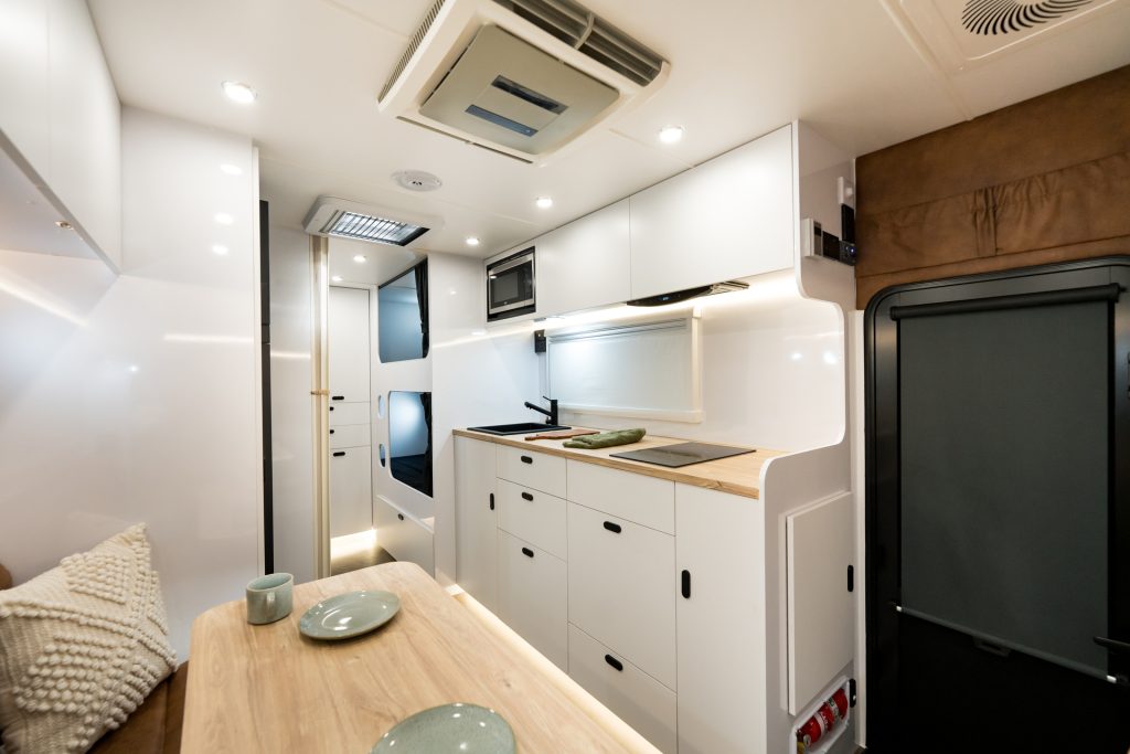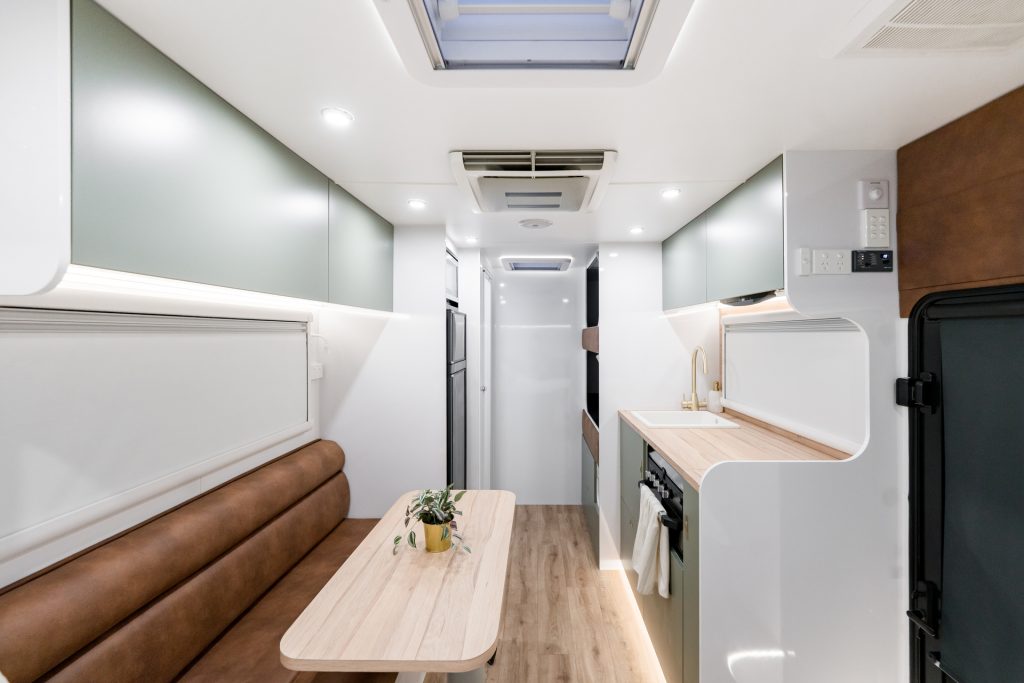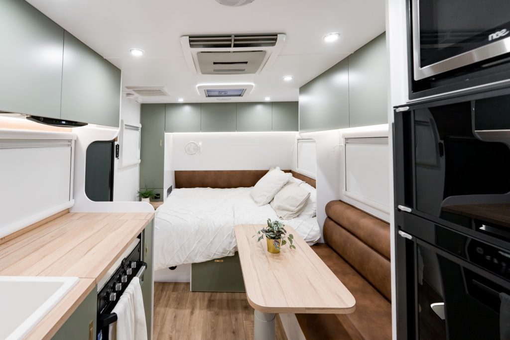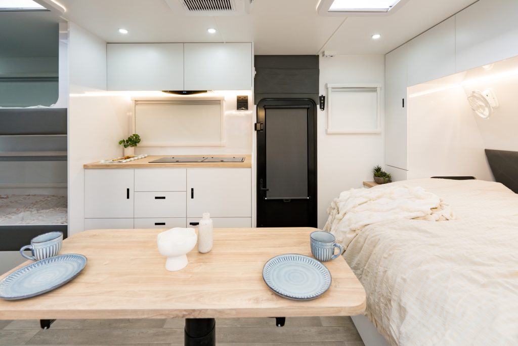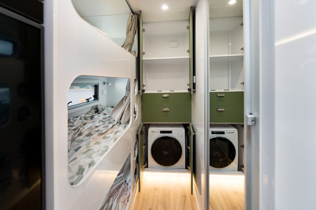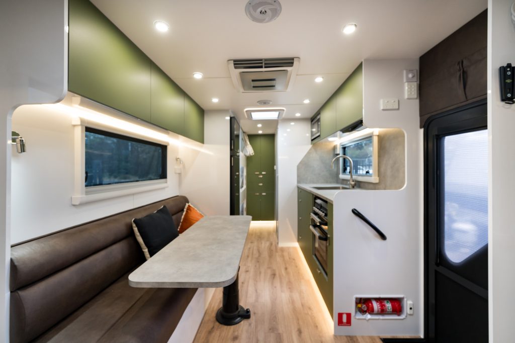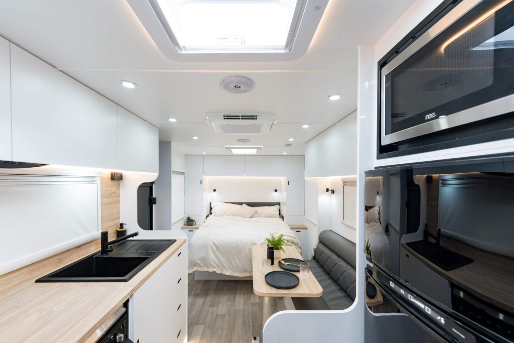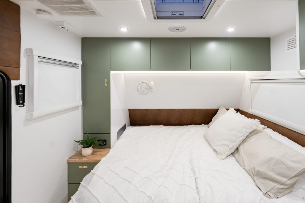 The Peak was built to take you further and keep you out there longer. Wherever the road ends, the Peak is just getting started. With coil suspension built for Australia’s toughest tracks, a full Victron electrical system, six hundred watts of solar, and 450 amp hours of lithium power, you can park up somewhere incredible and stay as long as you like. Hydronic diesel heating, reverse cycle air conditioning, a compressor fridge, induction cooktops, and a washing machine mean life on the road looks a lot like life at home, just with a much better view.