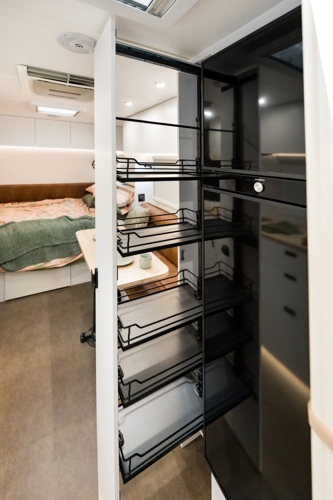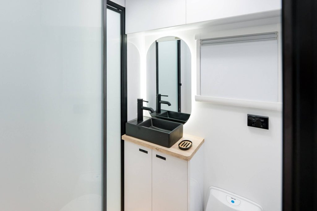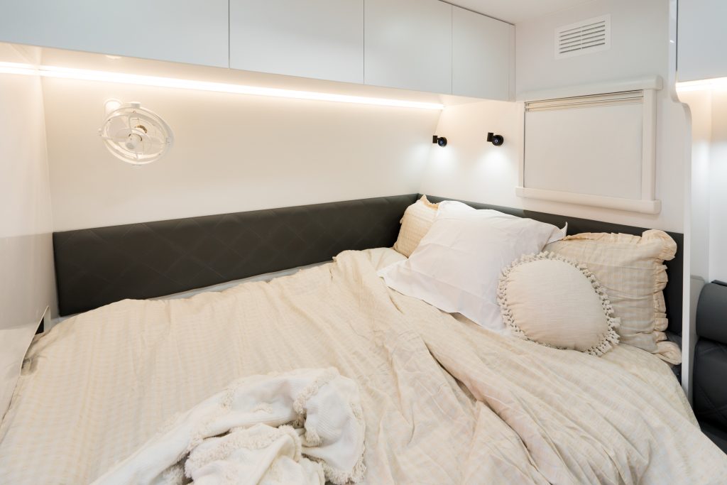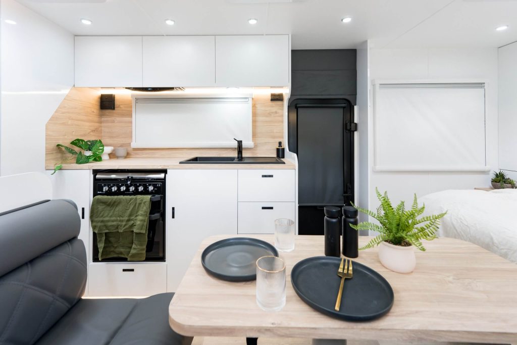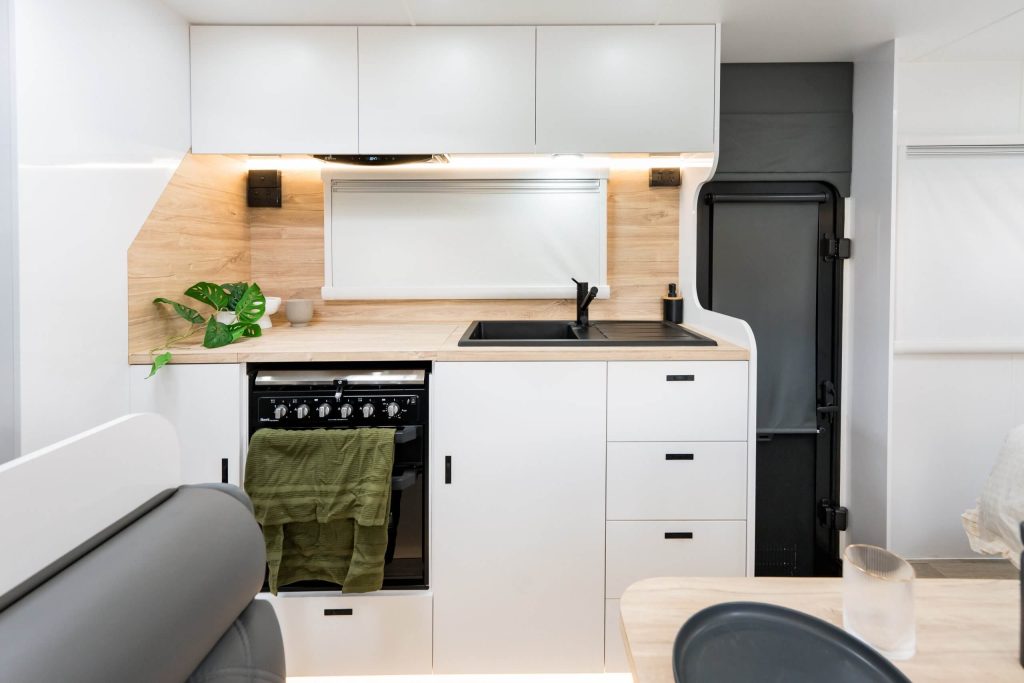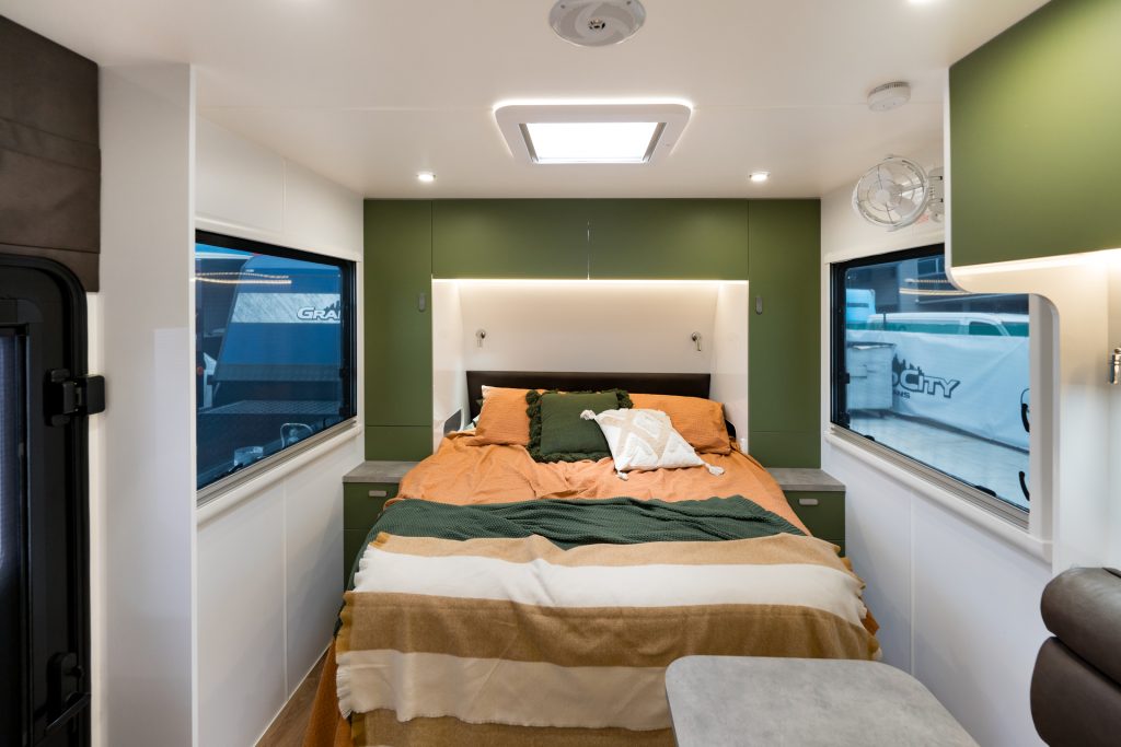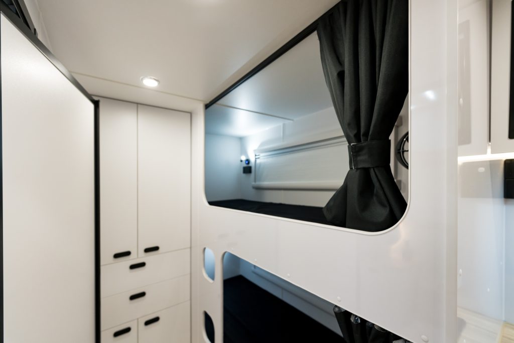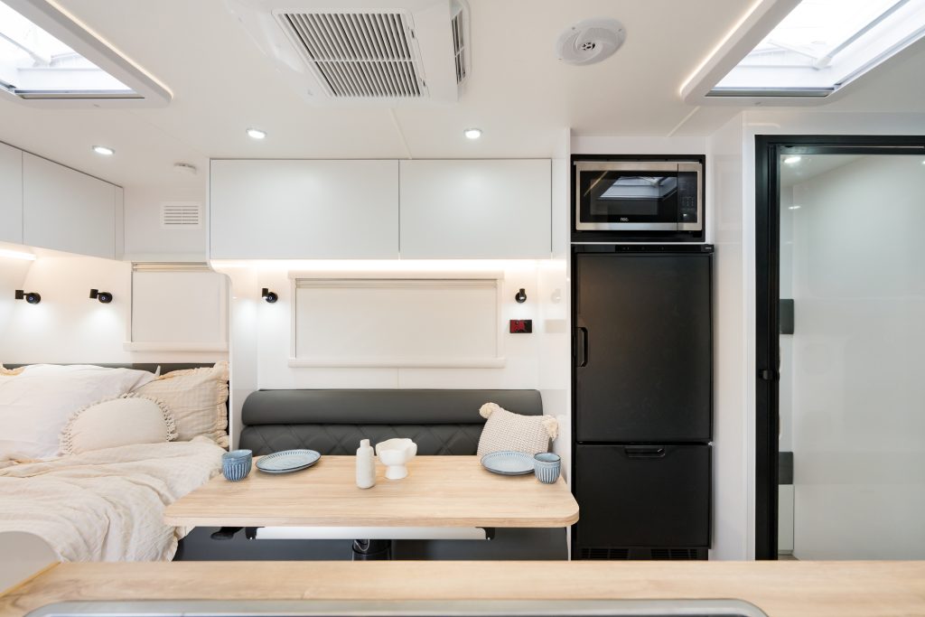 The Peak was built to take you further and keep you out there longer. Wherever the road ends, the Peak is just getting started. With coil suspension built for Australia’s toughest tracks, a full Victron electrical system, six hundred watts of solar, and 450 amp hours of lithium power, you can park up somewhere incredible and stay as long as you like. Hydronic diesel heating, reverse cycle air conditioning, a compressor fridge, induction cooktops, and a washing machine mean life on the road looks a lot like life at home, just with a much better view.